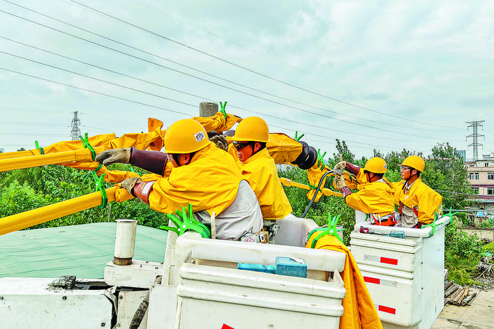 今年是“70后”周杨从事带电作业的第25个年头,经验丰富的他主动要求坚守在假期保电第一线。周杨擦拭着额头的汗水说,“辛苦点不要紧,为大家服务保障好,才是最有意义的事情。”