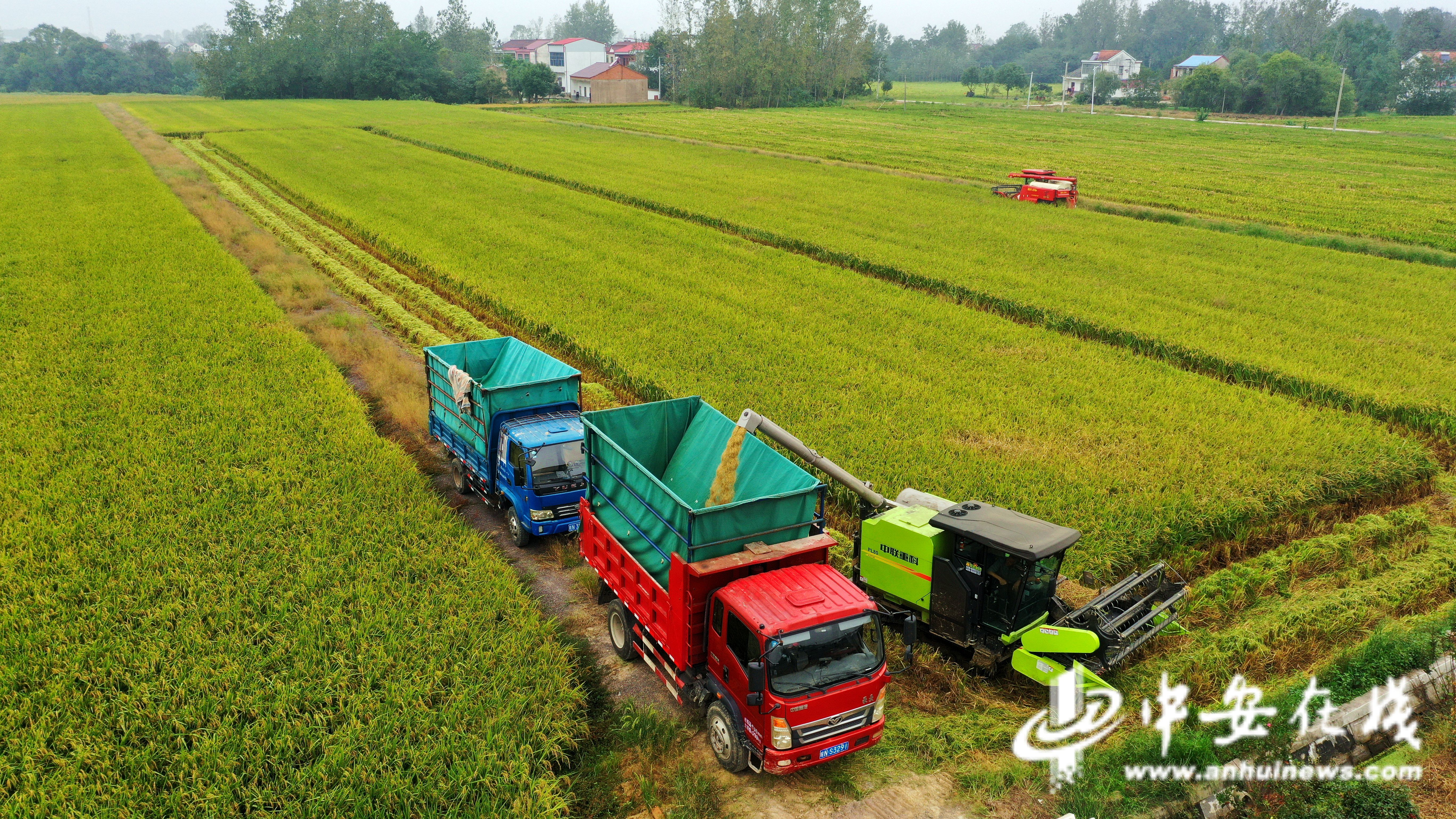 中安在线、中安新闻客户端讯 10月12日,安徽省舒城县舒茶镇龙王庙村一千多亩水稻开镰收割。近年来,该县大力实施高标准农田建设,改善农田基础设施,为规模化经营创造了有利条件,促进了粮食综合生产能力显著提升,使过去的许多“巴掌田”“望天田”变成了“丰收田”。(王可海 记者 张毅璞)