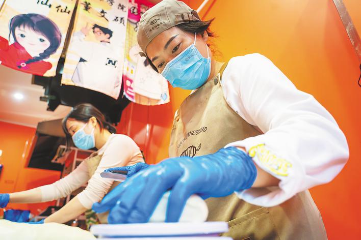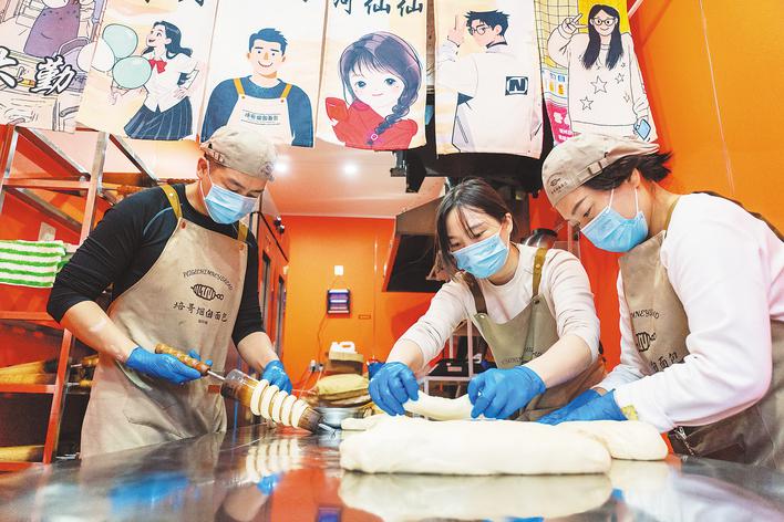 “家人给我取的小名叫培培,希望我能够成为一个有担当、不断进取的人,这也是店名的由来。”汪武一边通过手机打字交流,一边抬起头,眼神里带着认真的神情解释道。看着烤炉里渐渐成型的面包,汪武眼里闪起光芒:“最重要的是,希望有一份自己的事业。”