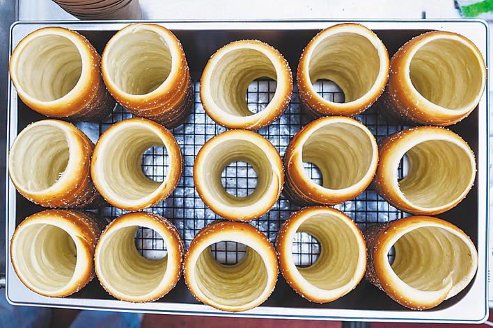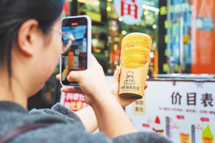合肥市庐阳区,不足10平方米的“培哥烟囱面包”店。形似烟囱的面包在烤炉上缓缓旋转,焦糖色的外皮泛着油光,阵阵醇厚麦香在空气中弥漫。店长汪武身着卡其色工装围裙,戴着蓝色手套仔细擦拭烟囱面包的木芯模具,动作细致得仿佛在打磨一件艺术品。旁边,他的妹妹汪勤专注地将裹好面团的模具摆进烤架。两人配合默契,忙碌的身影在橙色主调的店铺里穿梭,无论顾客如何开口,他们从不回答。
