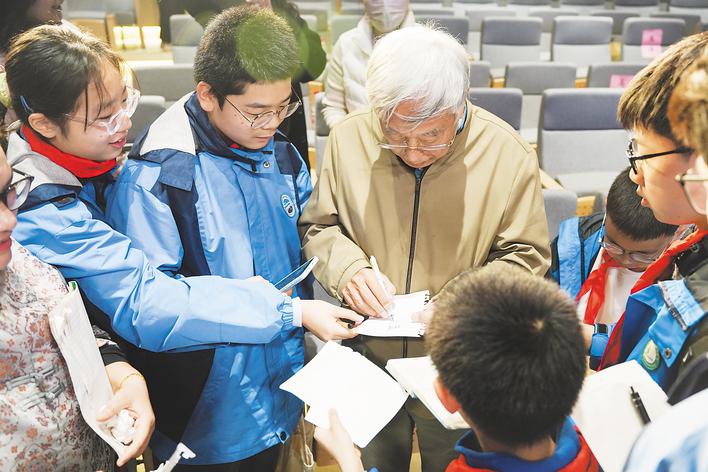 活动结束时,会场瞬间变成大型“追星现场”。很多中小学生手持笔记本和科幻书籍,向王晋康、何夕等名家索要签名,孩子们稚嫩的声音里满是热忱。科幻迷们排起长队,与心仪的作家交流创作心得。作家们耐心地回答每一个提问,现场暖意融融,科幻梦想的种子在互动中悄然萌发。