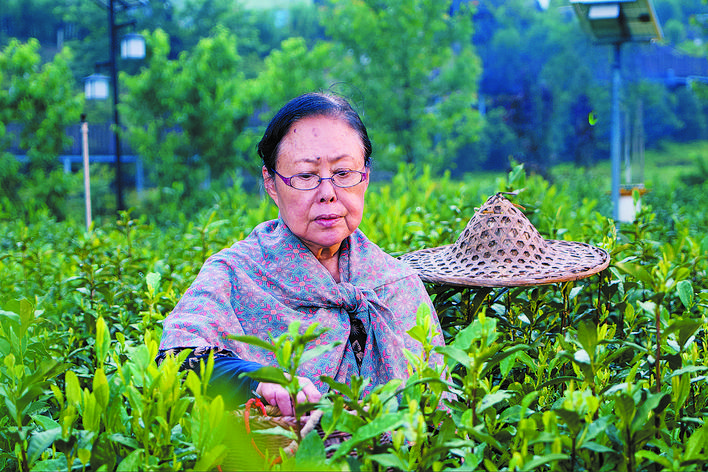 剧中,斯琴高娃扮演的“茶奶奶”在采茶、制茶。