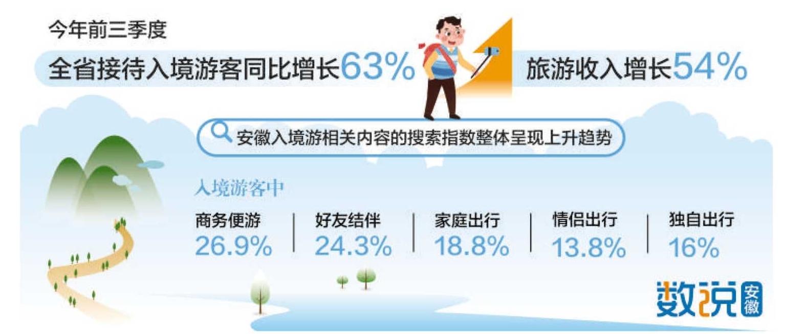 数据统计显示,今年前三季度全省接待入境游客人次同比增长63%,旅游收入增长54%,入境游呈现出蓬勃发展、量质齐升的良好态势。