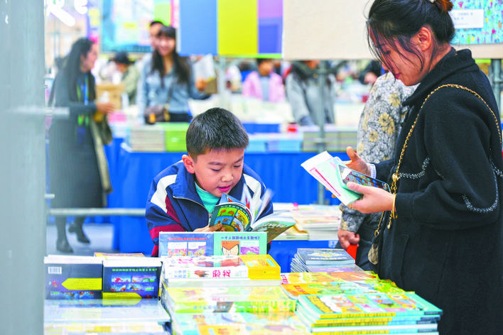 11月15日,2025中国黄山书会在合肥滨湖国际会展中心正式拉开帷幕。300多家出版机构,30万种正版图书文创,千万优惠券提前发放,全场文创图书券后5折起,更有“阅读+非遗+科技潮玩”沉浸式文化市集重磅亮相,为市民带来一场兼具文化温度与体验乐趣的书香盛宴。图为家长带着孩子在逛图书展区。