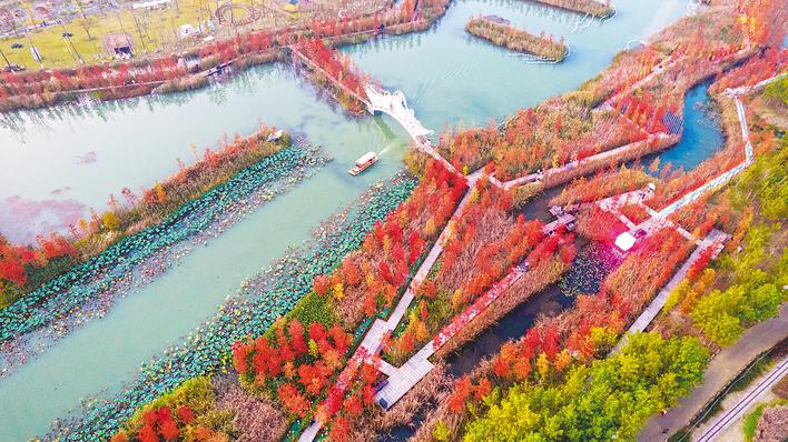 11月15日,包河区大圩镇磨滩旅游度假区层林尽染,色彩斑斓,如诗如画,吸引众多市民游客前来游玩。通讯员 马二虎 摄