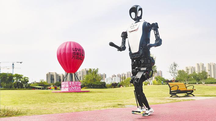人形机器人“夸父”在瑶海区青年创意田园开跑。通讯员 严莉 关堂所 摄