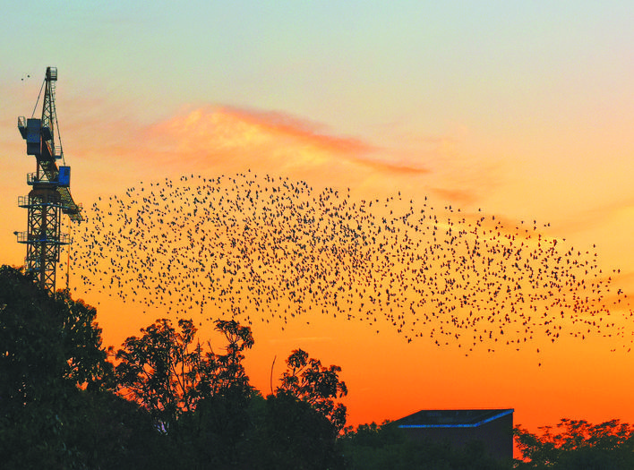 11月26日傍晚,巢湖学院上空上演震撼一幕,数千只鸟儿集群飞行,形成连绵起伏的“鸟浪”。群鸟时而盘旋俯冲,时而舒展队形,在暮色中勾勒出灵动轨迹,引得师生驻足观赏。 巢湖学院背靠汤山,周边绿植繁茂、生态环境优良,成为鸟儿归巢的天然驿站。记者 宋阳东 摄