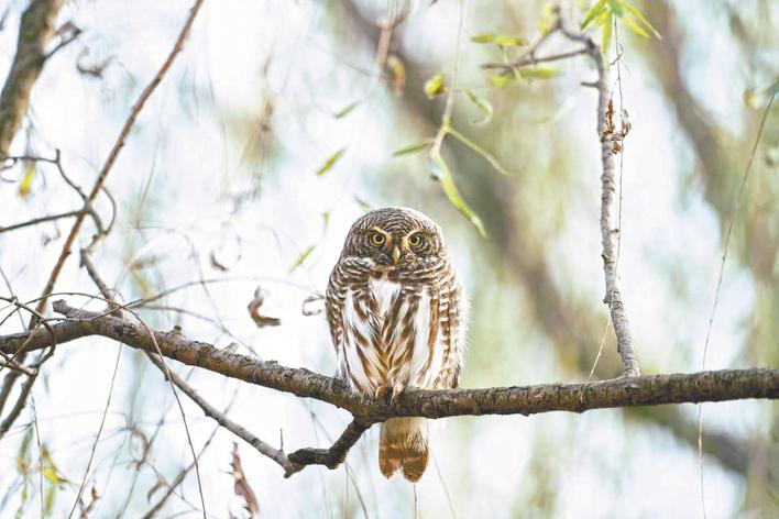 沈家军捕捉到的这只斑头鸺鹠,神态自若,举止自然,展现了其适应城市边缘环境的良好状态。