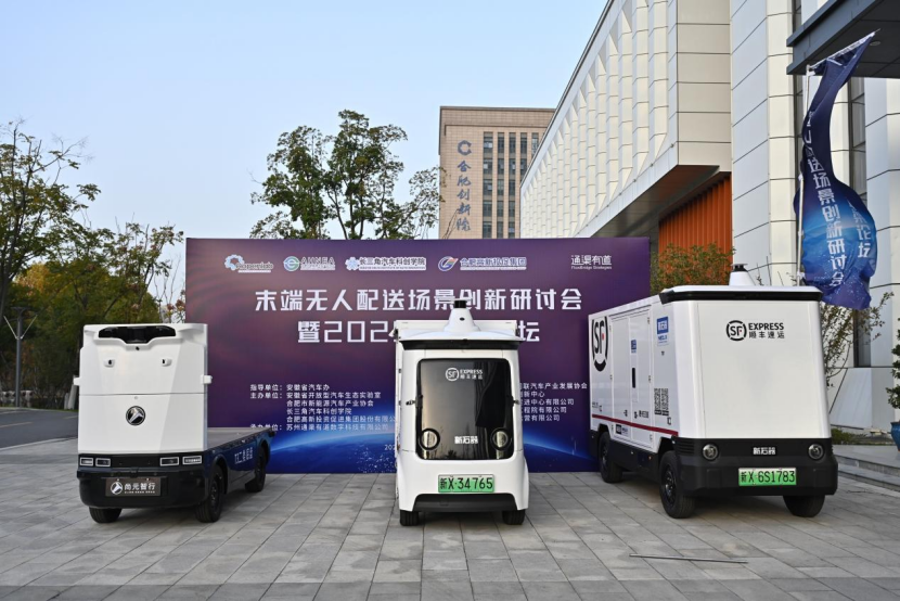 活动上,由通渠有道牵头编制的《2025年末端无人配送行业研究报告》正式发布,安徽省开放型汽车生态实验室、邮政科学研究规划院、白犀牛、行深智能、新石器、九识智能、祺迹汽车、布谷鸟同创、远程慧联、江苏行之途、新吉奥汽车、中科森壤、中路慧能等十三家单位共同见证。