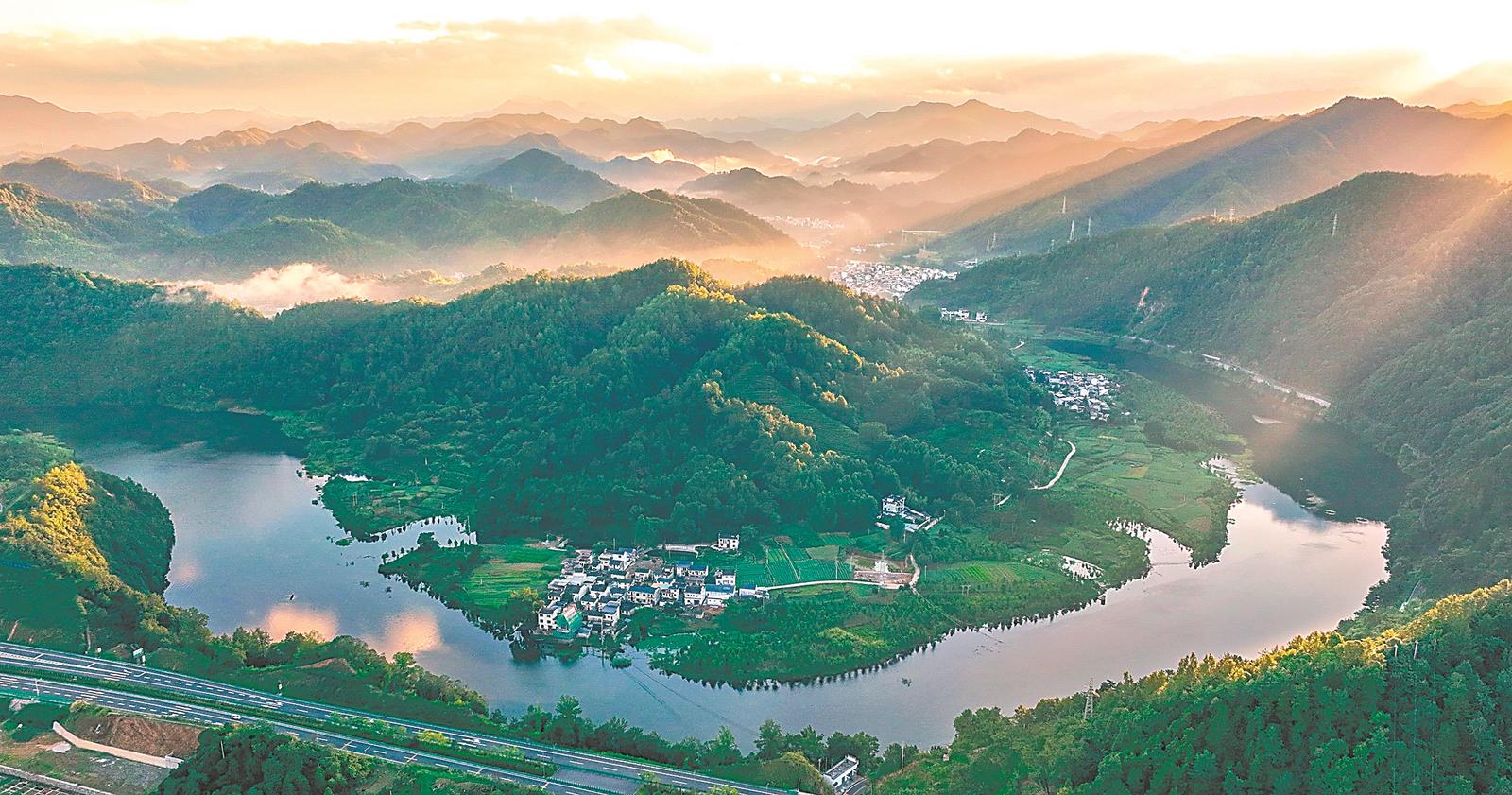 在黄山市歙县深渡镇拍摄的新安江山水画廊生态美景。通讯员 郑宏 摄