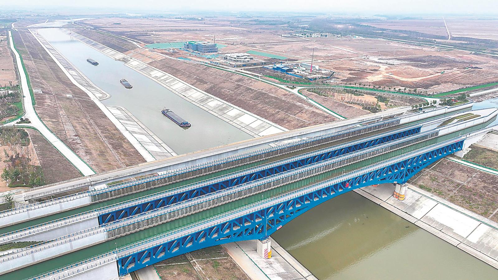 江淮运河航道是连通长江干线主航道与淮河的专用通道,形成与京杭运河平行的第二条南北水运大动脉,可通航2000吨级船舶。图为船只穿行在肥西县境内的江淮运河段。通讯员 赵明 摄