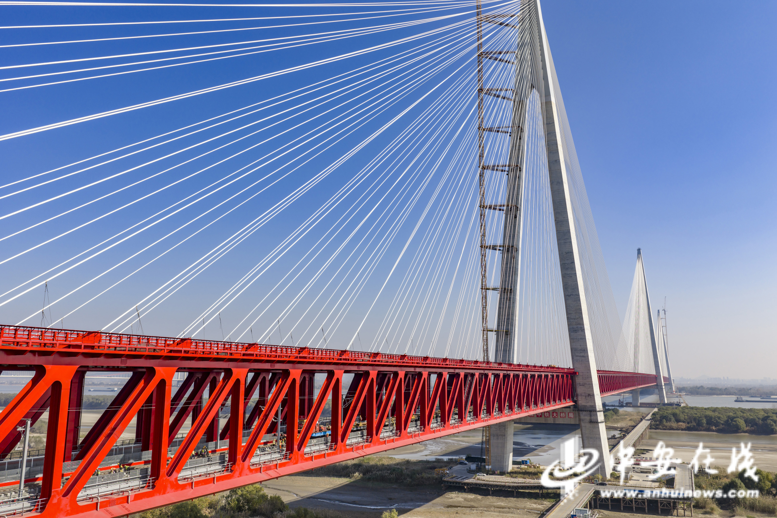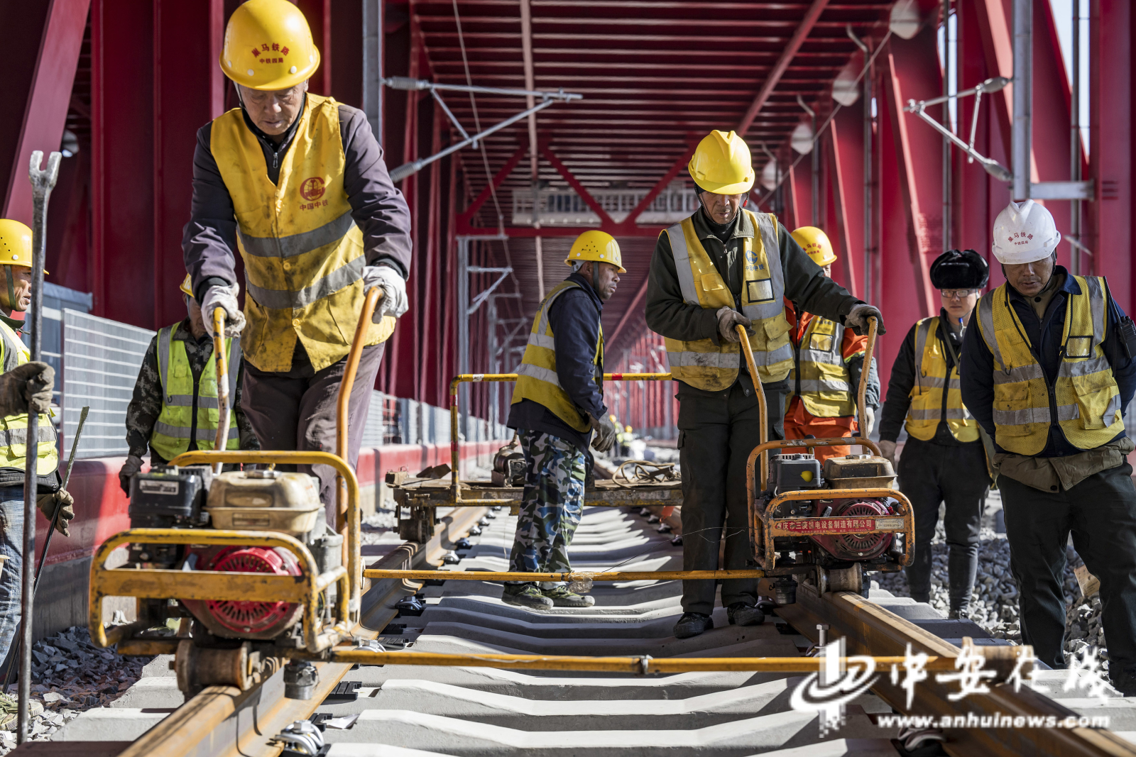 中安在线、中安新闻客户端讯 12月3日,在安徽省马鞍山市当涂县施工现场,国产WZ500型长轨铺轨机将最后一对500米无缝钢轨精准铺设到位,巢湖至马鞍山城际铁路(以下简称“巢马城际铁路”)马鞍山长江公铁大桥主汊航道桥实现轨通,也标志着巢马城际铁路全线铺轨工程取得重大进展。