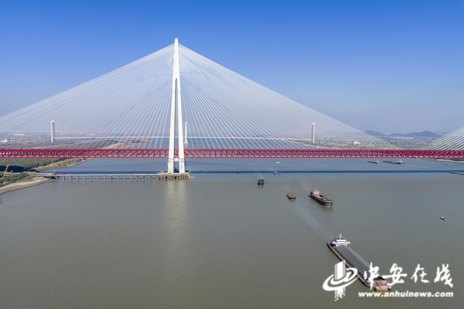 2025年12月3日,安徽省马鞍山市当涂县巢马城际铁路马鞍山长江公铁大桥主汊航道桥施工现场,一列满载500米无缝钢的轨道运轨车轨经过长江航道。