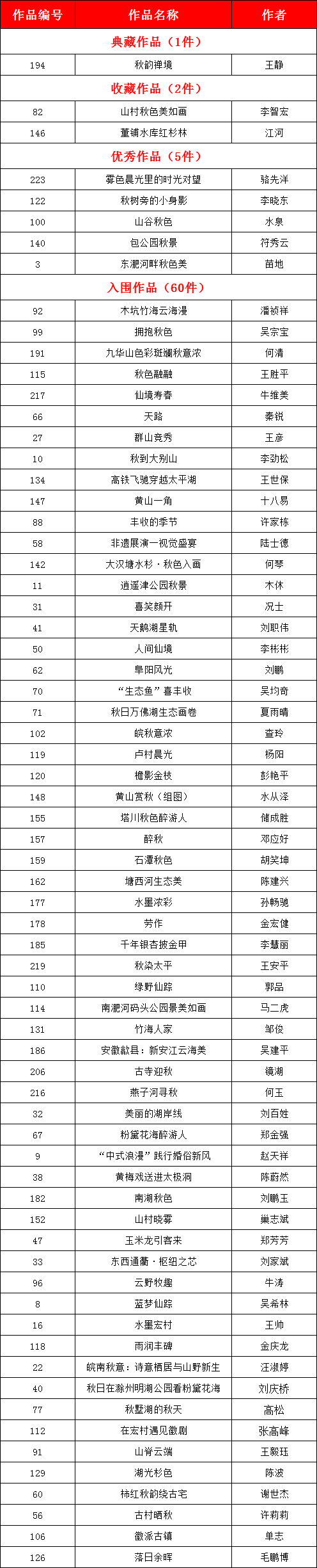 公示时间为2025年12月8日 - 2025年12月14日,欢迎社会各界对评选结果进行监督。如对公示作品有异议,可在公示期内以实名邮件反映,并提供可查的具体线索。公示期间,请表中入围68件作品的作者在12月14日前将作品原图提交至邮箱(ahnewsapp@163.com),邮件标题统一以“作品名称+姓名+手机号”命名,作品无EXIF信息又未提供原始图片致无法鉴定将取消获奖资格。经核对无误后将按照活动征集方案进行奖励发放。