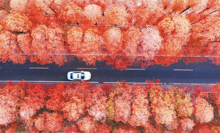 冬日的包河区大圩镇圩新路,仿佛一幅流动的诗意画卷。道路两旁的水杉林如火焰般燃烧,金黄、橙红的叶片交织成绚丽的色彩海洋。微风拂过,树叶簌簌作响,飘落的叶片在空中翩翩起舞,为路面铺上一层柔软的彩毯。漫步其间,仿佛置身于时光隧道。 通讯员 王世保 摄