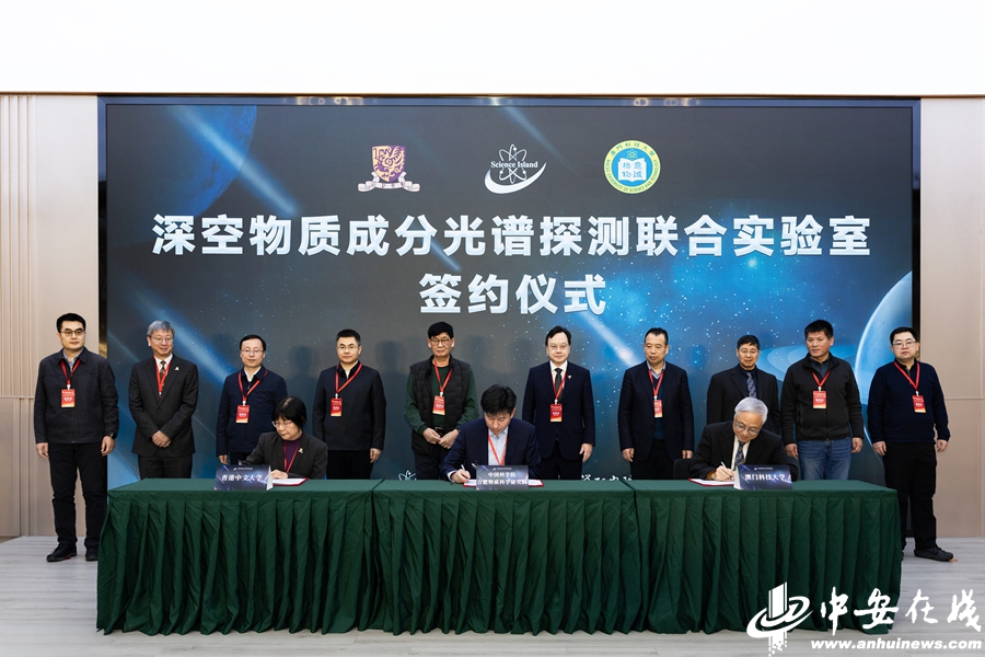 中安在线、中安新闻客户端讯 12月14日,中国科学院合肥物质科学研究院(以下简称“合肥物质院”)、澳门科技大学与香港中文大学在合肥科学岛共同签署协议,三方合作共建“深空物质成分光谱探测联合实验室”并同步启动天问三号载荷“激光外差光谱仪”的联合研制任务。