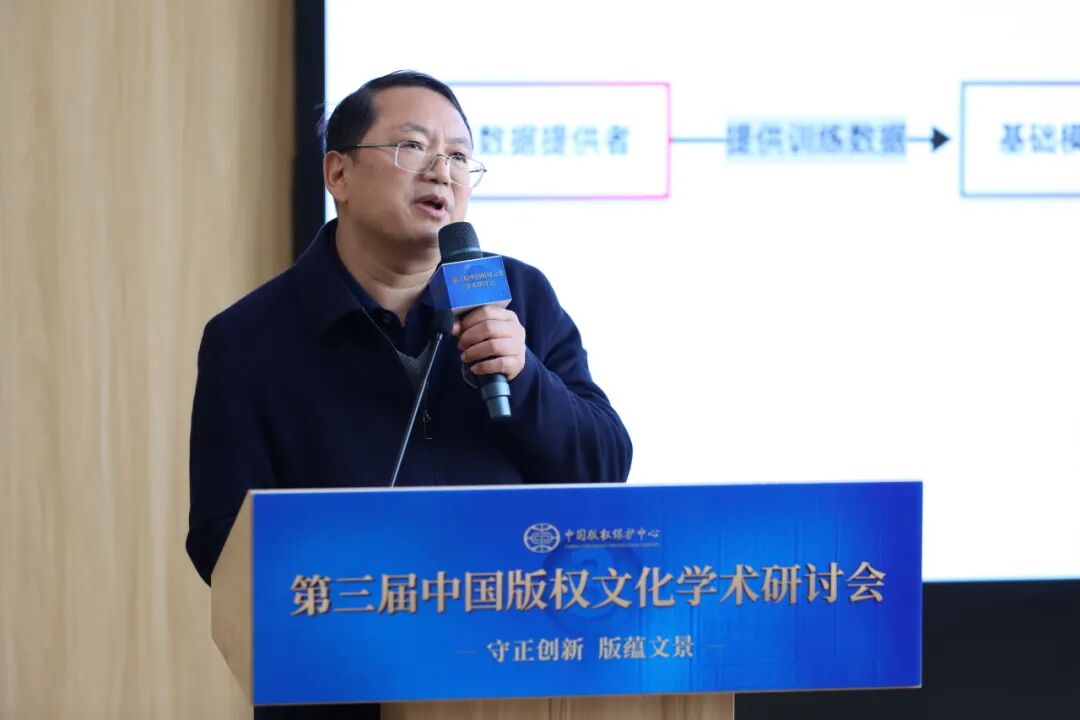 山东大学数字出版研究中心主任张立以“AI时代版权人才培养的难点与突破”为题作了分享。他说,一方面我们希望AI平台尊重版权,另一方面也期待规范使用AI生成内容。AI时代技术推动产业变革,社会对于版权人才需求是非常普遍的,尤其是在创意这个弥足珍贵的领域。因此各高校都在通过创新版权人才培养模式满足社会发展需求。