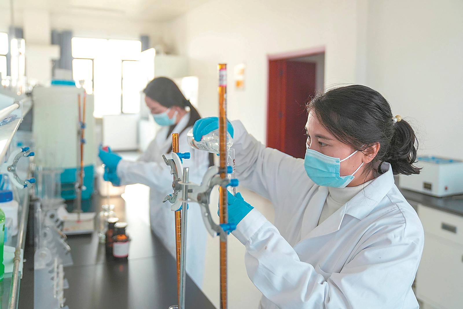 12月16日,涡阳县龙山地表水厂化验人员在检测水质。