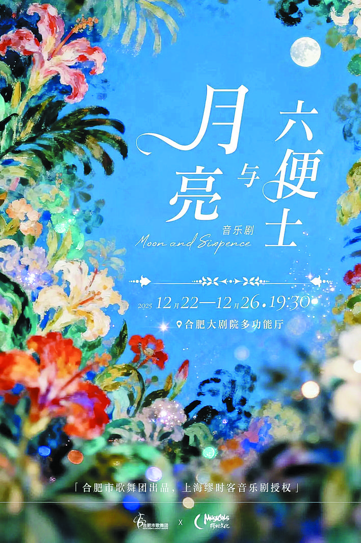 “满地都是六便士,他却抬头看见了月亮”,这句穿透百年的灵魂叩问,即将在合肥大剧院绽放舞台光彩。由上海缪时客音乐剧授权,合肥演艺集团出品、合肥市歌舞团倾力演绎的沉浸式音乐剧《月亮与六便士》,将于2025年12月22日至26日在合肥大剧院多功能厅温情开演,邀您共赴一场理想与现实的心灵对话。