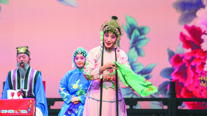随着剧情推进,台上演员以婉转唱腔演绎悲欢离合,更凭一招一式的细腻身段道尽角色心底千回百转的情绪。两对有情人历经误会猜忌终成眷属的故事,在演员们传神的演绎中愈发牵动人心。