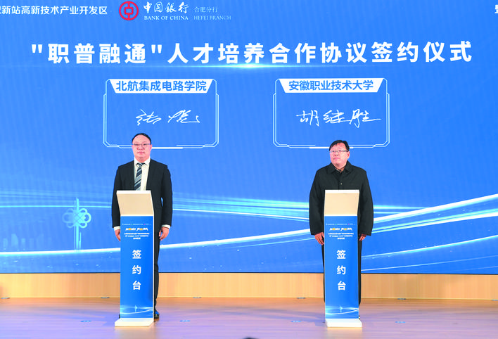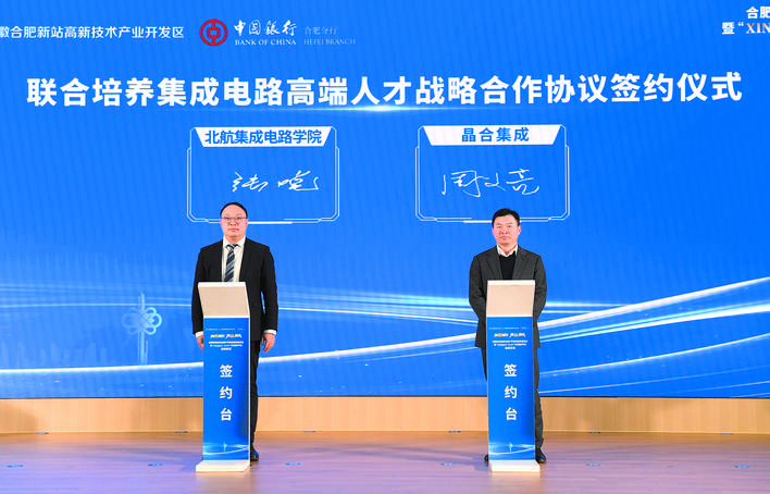 “集成电路产业竞争,归根结底是人才竞争。”在当天下午的活动中,北航集成电路科学与工程学院与合肥晶合集成电路股份有限公司签署了集成电路高端人才联合培养战略合作协议,与安徽职业技术大学签署了“职普融通”人才培养合作协议。