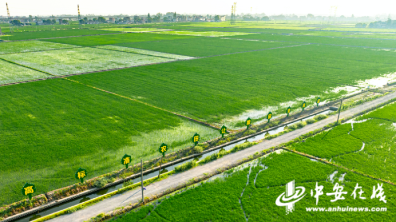 在沈巷镇双河村,一望无际的高标准农田格局方正,沟渠纵横,道路通畅。无人机正在麦田上空进行飞防作业。“过去这里地块零散,灌溉排水都难。现在全是‘田成方、路相通、渠相连’的‘吨粮田’。”驻村第一书记王立跃介绍。