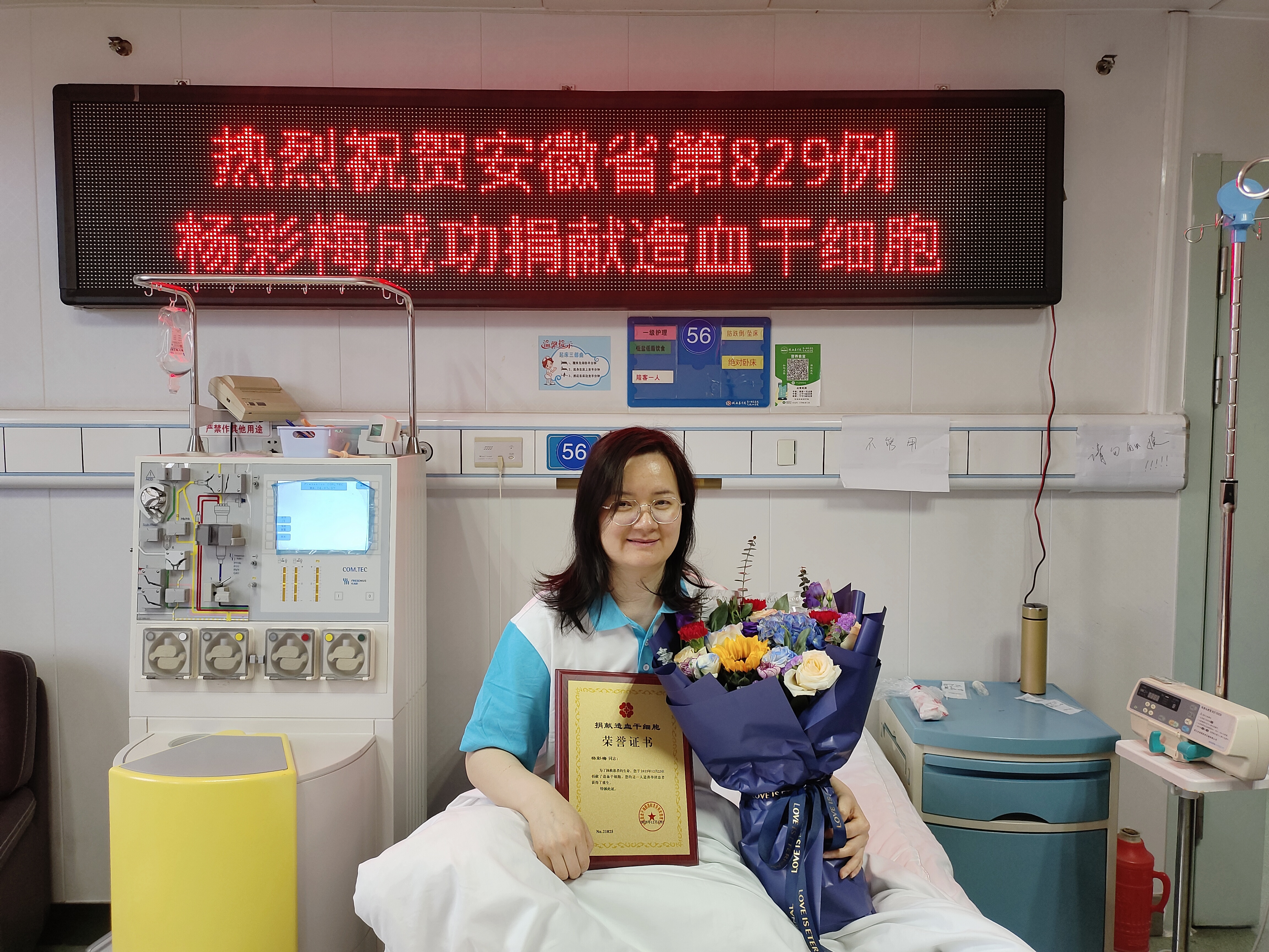 历经4小时50分钟的采集,杨彩梅成功捐献造血干细胞混悬液285毫升,成为安徽省第829例造血干细胞捐献者。她献出的这份生命种子,将为一位血液病患者带去生的希望。