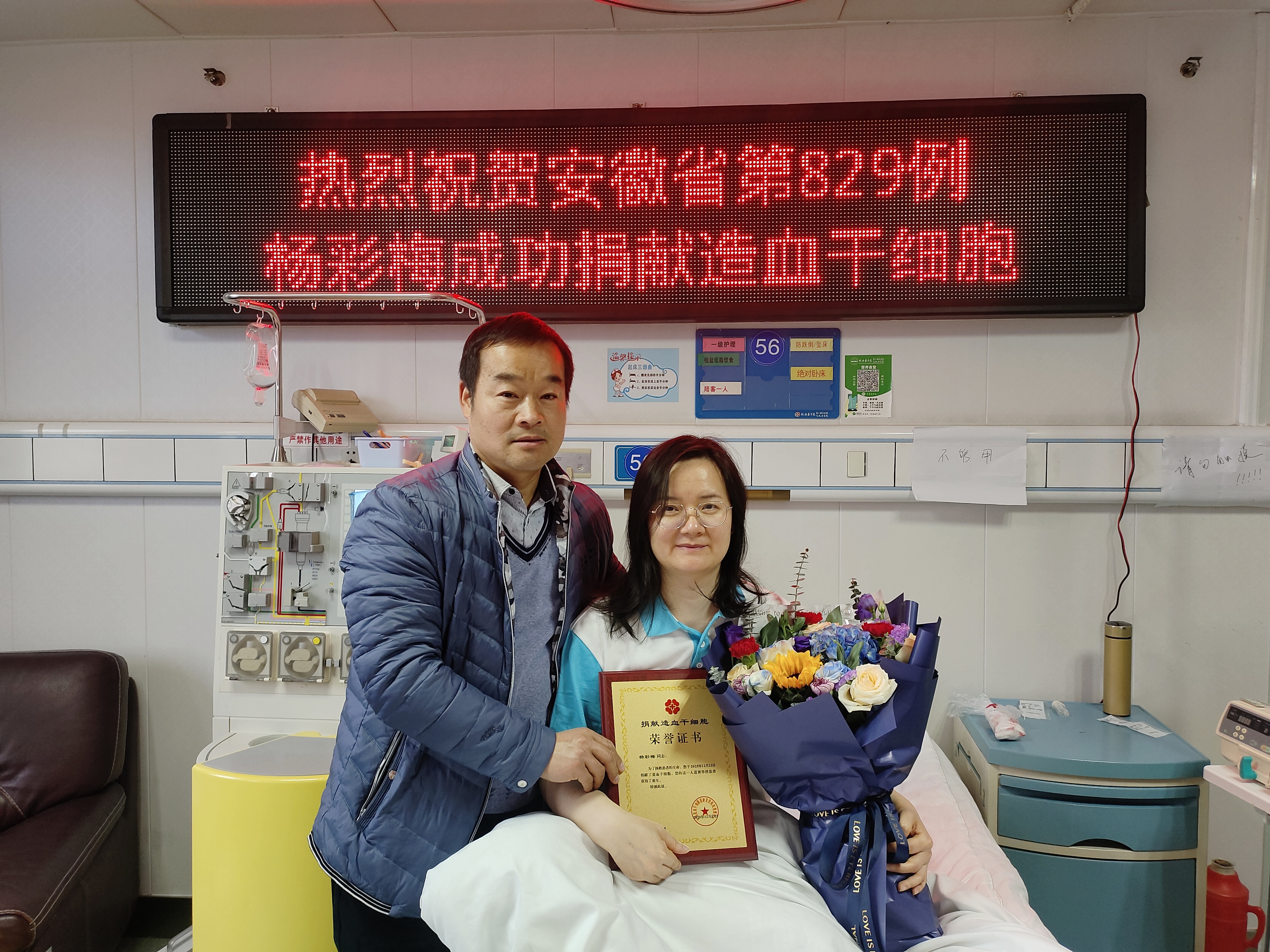 12月23日上午,杨彩梅走进了采集室。当天,吴勤特地请了假,陪着妻子一起度过这段捐献之旅。在捐献过程中,吴勤时不时帮杨彩梅按摩手指、掖好被角,询问她是否需要喝水。“我跟他说了不要来,他说他非要来,还说捐献完了要把我接回家。”躺在病床上,看着丈夫在一旁细心照顾,杨彩梅的内心感到很幸福。