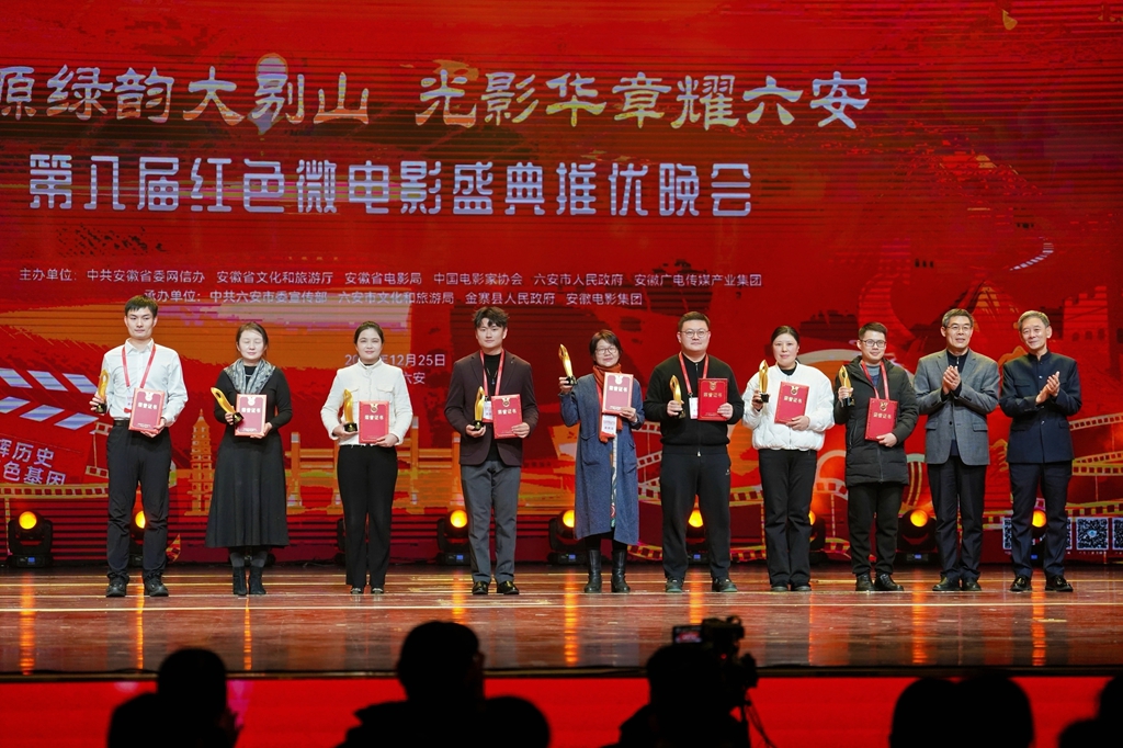 中安在线、中安新闻客户端讯 12月25日晚,第八届红色微电影盛典推优晚会在六安市金寨县举办。晚会以“红源绿韵大别山 光影华章耀六安”为主题,来自全国影视创作者、行业专家、各界观众等600人,共同见证了红色光影的荣耀时刻。