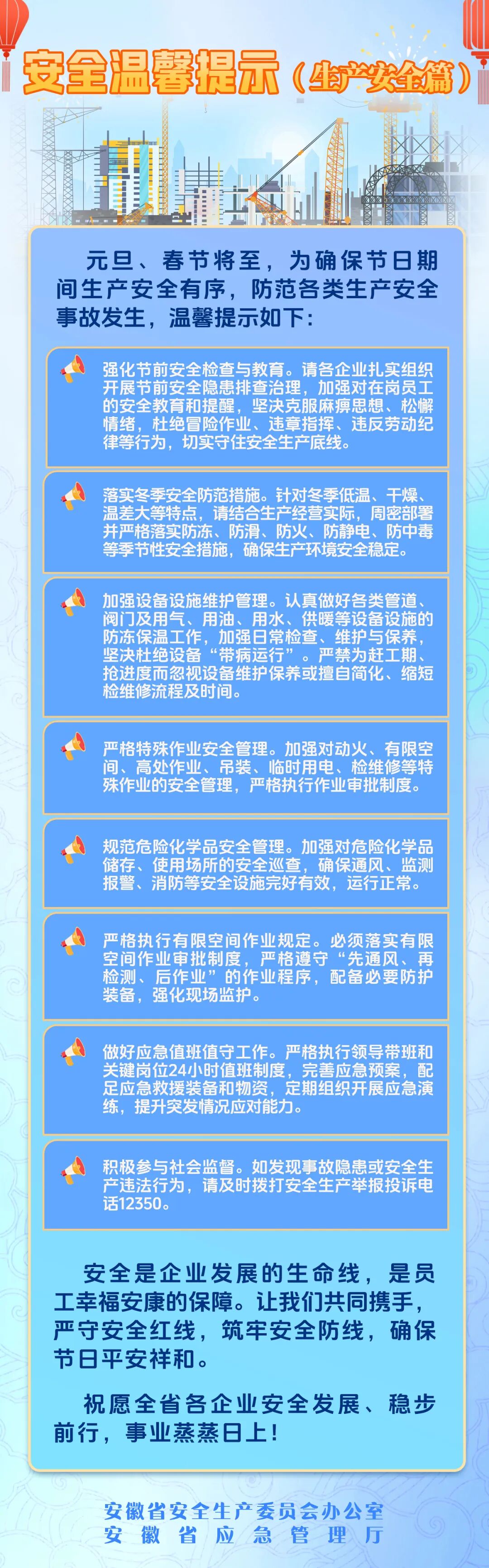 元旦、春节将至,生产安全温馨提示,速看→