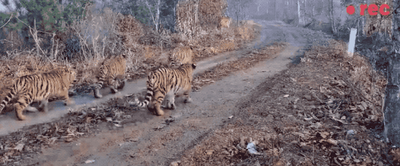 今年8月,东北虎豹国家公园吉林珲春片区还曾记录到“一虎带四崽”的珍贵影像。巡护员介绍,拍摄到一虎带多崽影像的地点均属于珲春市杨泡乡。除了两个多崽的东北虎家庭之外,这里还有其他几只东北虎个体,常年往来活动。
