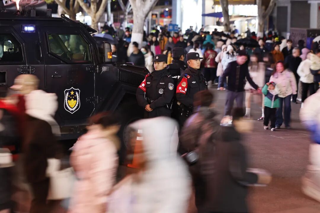 2025年12月31日晚,合肥全市公安机关在重点商圈、景区、交通枢纽等人流密集区域,持续加强巡逻值守与秩序维护,全力保障市民、游客在平安祥和中迎接新年。