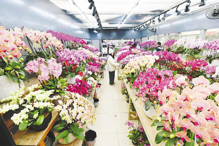 近日,市民在蜀山区井岗镇十里店社区清溪小镇花卉市场选购蝴蝶兰。元旦期间,清溪小镇花卉市场鲜花绿植日渐走俏,市民纷纷来此选购花卉装饰居室,增添喜庆氛围。