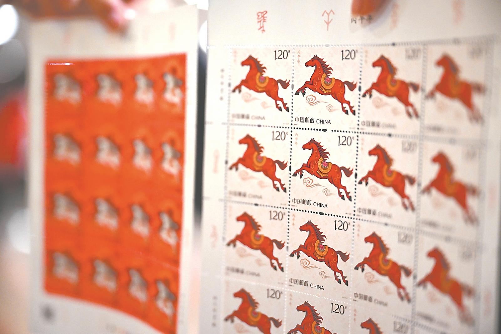 1月5日,合肥邮政《丙午年》特种邮票首发仪式暨客户品鉴会在合肥天鹅湖大酒店举行。本次首发的邮票由知名设计师王红卫、赵恩重联袂打造,全套共2枚,分别为“驰跃宏图”和“万骏臻福”。记者 温沁 摄