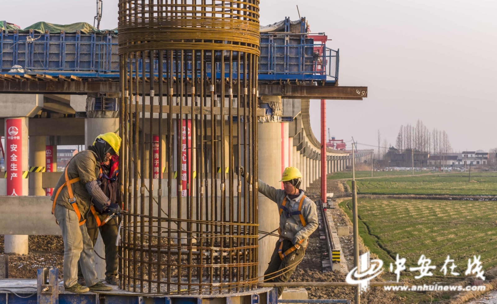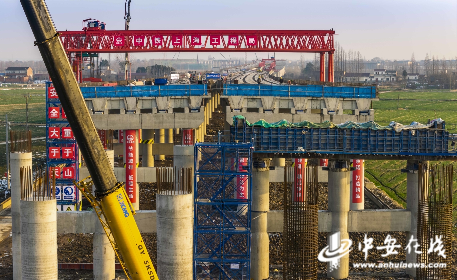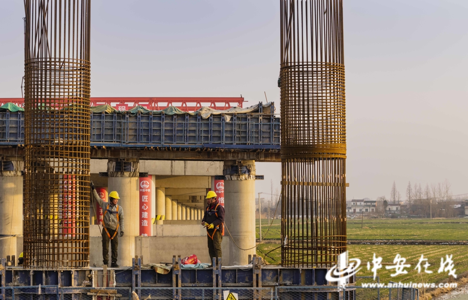 中安在线、中安新闻客户端讯 1月23日,铜陵至商城高速公路巢湖至肥西段3标在合肥庐江县有序施工。自2025年底完成全线首联钢箱梁架设后,项目关键节点均稳步推进,现已全面进入上部结构施工阶段,箱梁预制与架设同步进行,为如期通车打下基础。