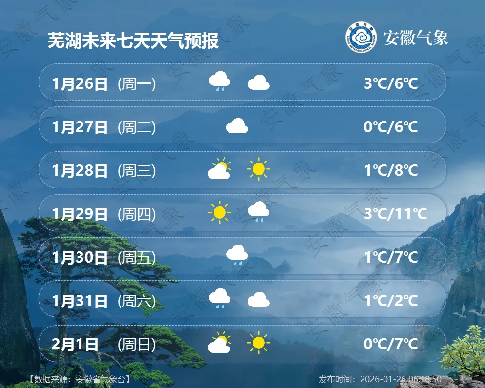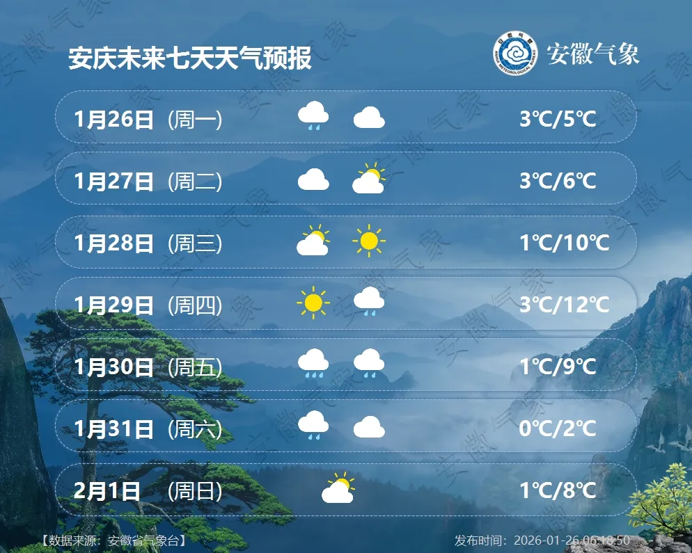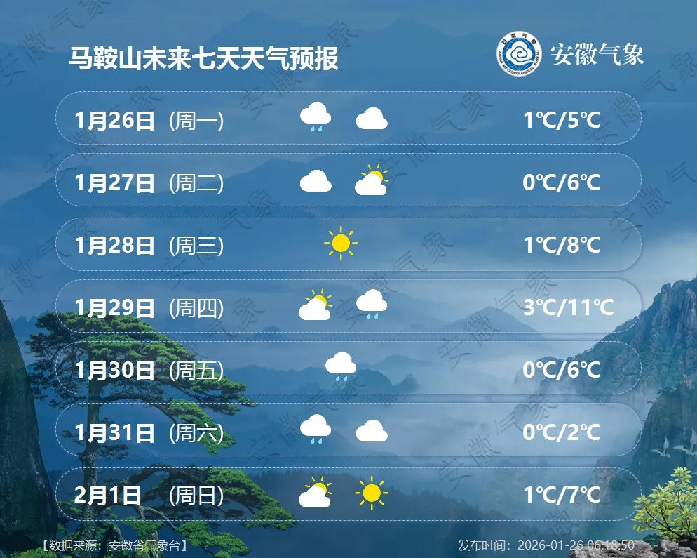 据安徽省气象台最新预报:27日江南南部有小雨或雨夹雪;29-31日我省还有一次雨雪天气过程;未来十天其余时段全省以多云到晴天气为主。