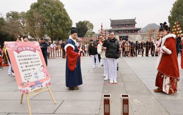 1月28日下午,“龙马精神耀歙城·全民健身大拜年”活动在徽州古城府衙广场热闹开启。作为安徽省全民健身大拜年活动两个主会场之一,歙县推出的国风运动会通过设置蹴鞠、投壶、木射捶丸、翔翎(鸡毛毽)、礼射(射箭)等六大古风运动项目,打造“体育+古风”的跨界体验。现场市民踊跃参与、其乐融融,既彰显了全民运动热情,更营造出喜庆祥和的新春氛围。冯溪孜/摄