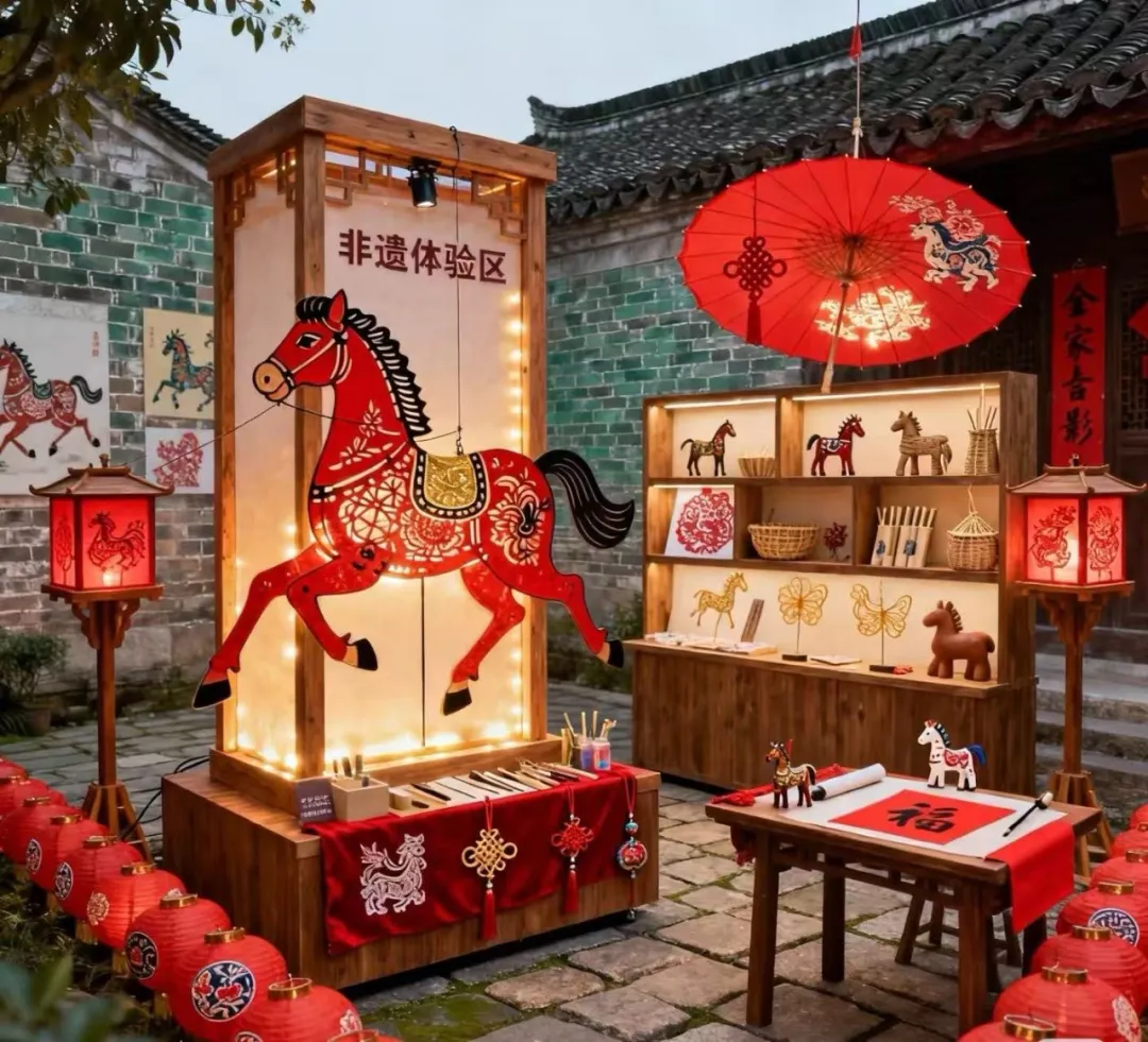 此外,现场还将设置马年生肖主题移动展,生动展现生肖文化的深厚内涵;同时举办传统民俗竞演活动,让非遗真正“活”在当下、融入年节。