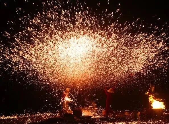 夜晚:千年非遗“打铁花” ,震撼上演!