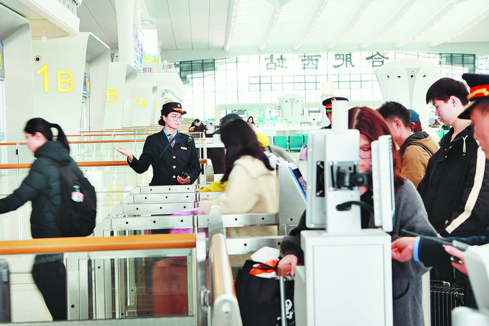 2月2日,为期40天的春运大幕正式开启。受超长春节假期等影响,相关部门预测,今年春运期间我国全社会跨区域人员流动量和铁路、民航客运量均有望创历史同期新高。值得一提的是,合肥西站将迎来首个春运,图为旅客在合肥西站有序进站乘车。(记者 余佼佼/文 通讯员 朱扬/摄)