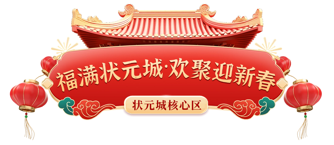 状元城片区以“状元文化”为魂,打造新春仪式感与人文欢聚中心。九大重点活动贯穿整个春节,集祈福仪式、文化展演、民俗体验、消费聚集于一体,带你沉浸式体验“福”文化。