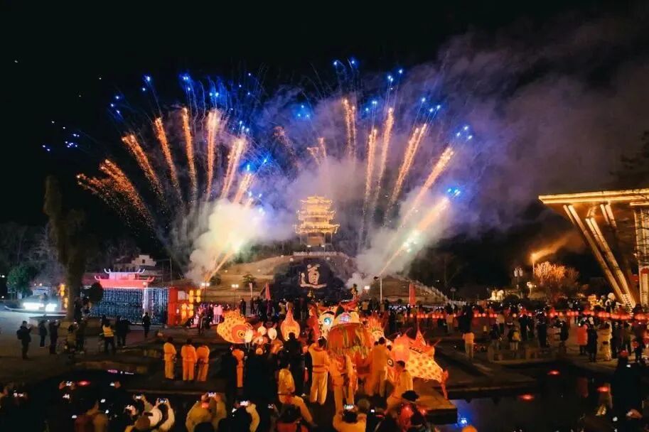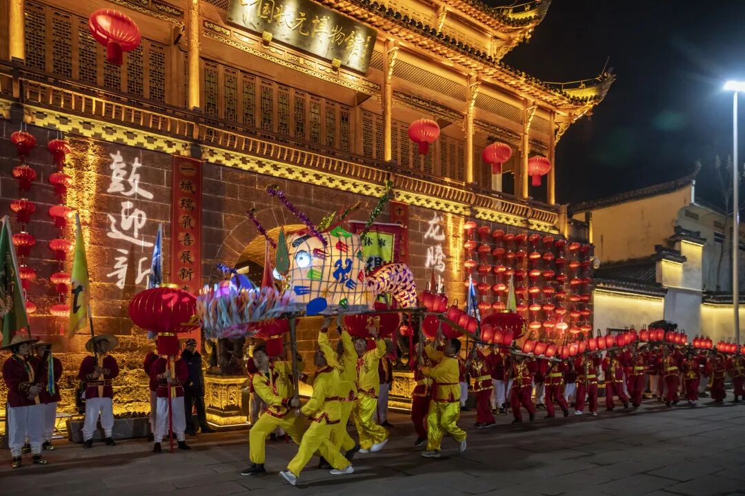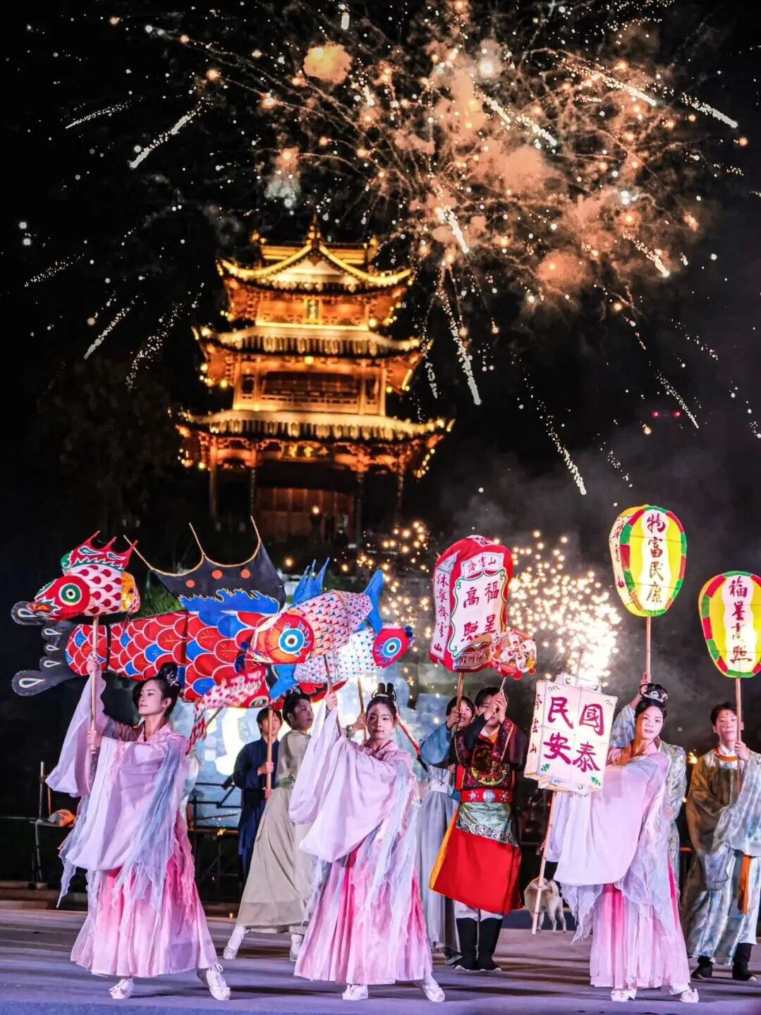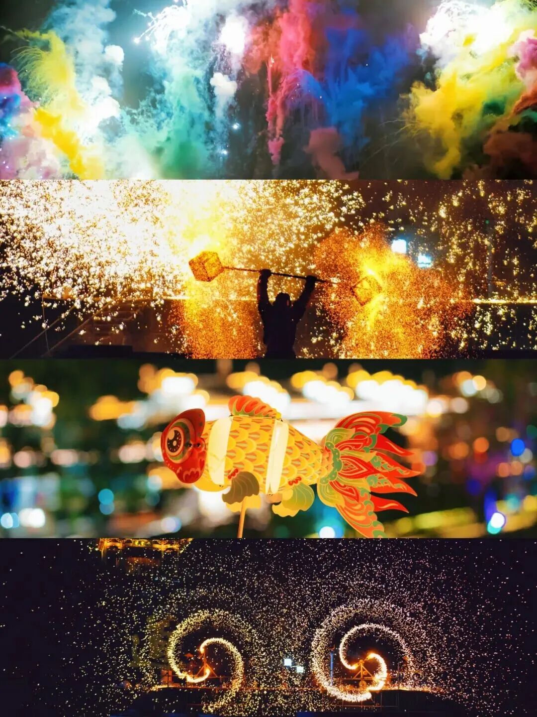 待夜幕降临,年味随之升腾。龙腾狮跃·祥瑞巡游将点亮福熙长街;更有双龙汇福·横江呈祥的震撼奇观——岸上布龙与横江金龙遥相呼应,最终在绚烂烟花与祈福火塔中交汇,气势恢宏。灵动的福鱼闹春·鱼灯巡游亦将蜿蜒游走于街巷之间。
