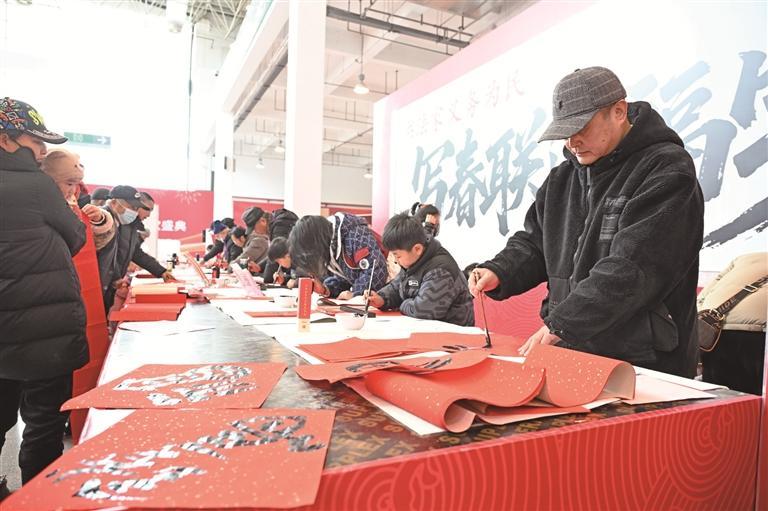 1月31日,在芜湖宜居国际博览中心年货节上,主办方邀请书法家和“小小书法家”们一起现场挥毫,免费为市民书写春联、福字,为即将到来的农历马年增添浓郁的文化气息与节日温情。