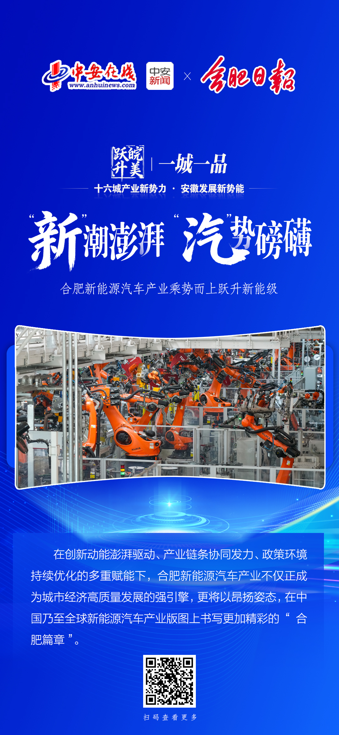 中安在线联动省内十六个地市主流党媒,聚焦各地最具代表性、成长性的新兴产业与未来产业,以“一城一产业一故事”为主线,共同策划推出“十六城产业新势力·安徽发展新势能”全媒体联名报道,开设《皖美跃升 一城一品》专栏。本次报道绘制一幅动态、立体、可感知的安徽产业高质量发展地图,突出产业“新势力”、诠释发展“新势能”,展现安徽在培育新质生产力上的积极作为,与各地两会精神同频共振,为奋力谱写中国式现代化安徽篇章营造浓厚氛围。