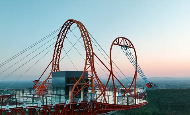 途径逍遥谷·高空乐园,这里的高空蹦极、悬崖秋千、玻璃水滑都是游客非常喜爱的项目,乘坐电梯直达玻璃塔顶部,可以欣赏到整个治父山景区的壮观景色。