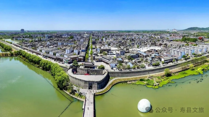 古城魅力:寿县古城是中国保存较完善的古城之一,登上古城墙,俯瞰古城风光,墙外的护城河波光粼粼,城内古街古巷纵横交错,能感受到这座古城独特的韵味和厚重的历史。