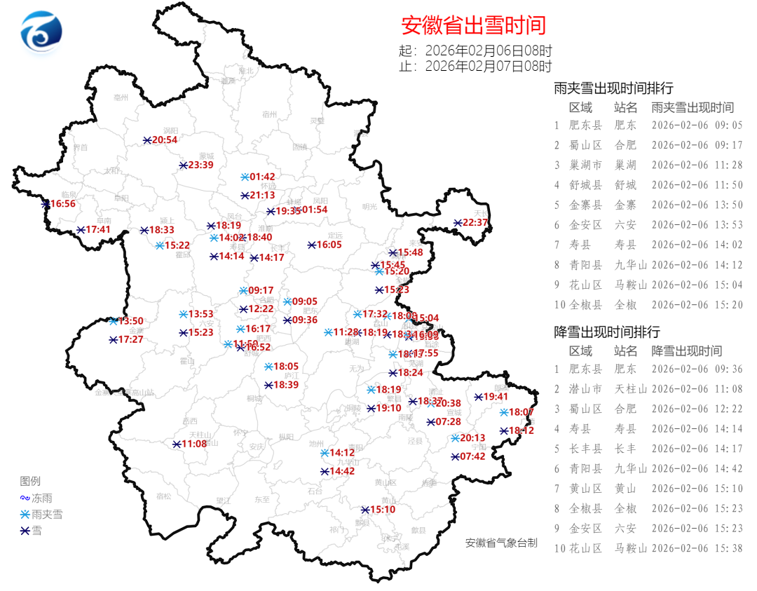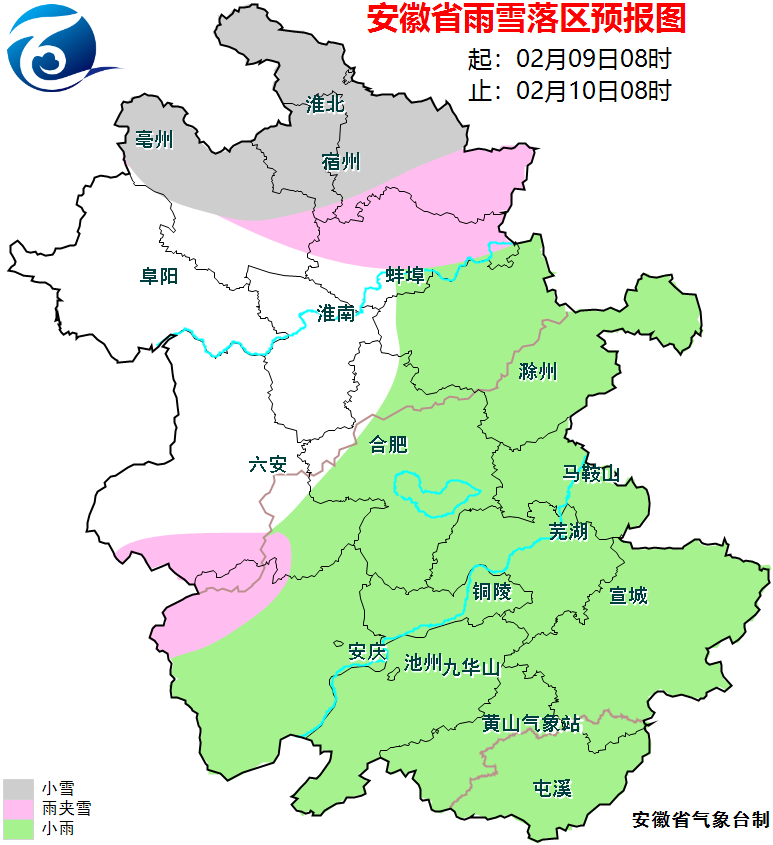 9日(周一):全省多云转阴天,淮河以北中东部有雨夹雪或小雪,淮河以南大部分地区有小雨,大别山区有雨夹雪或雪。