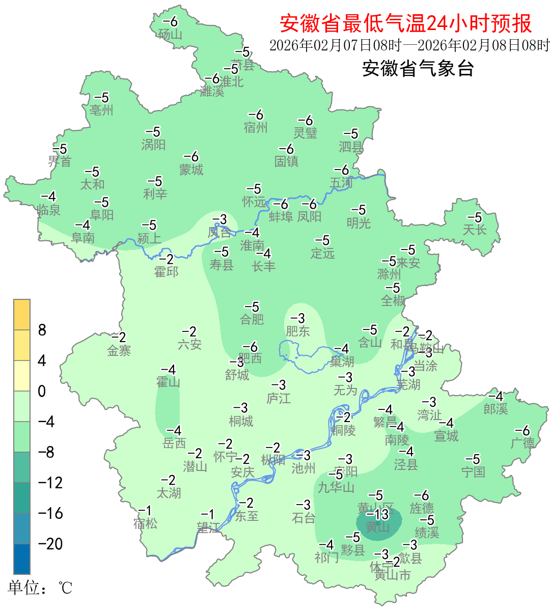 安徽最低气温: