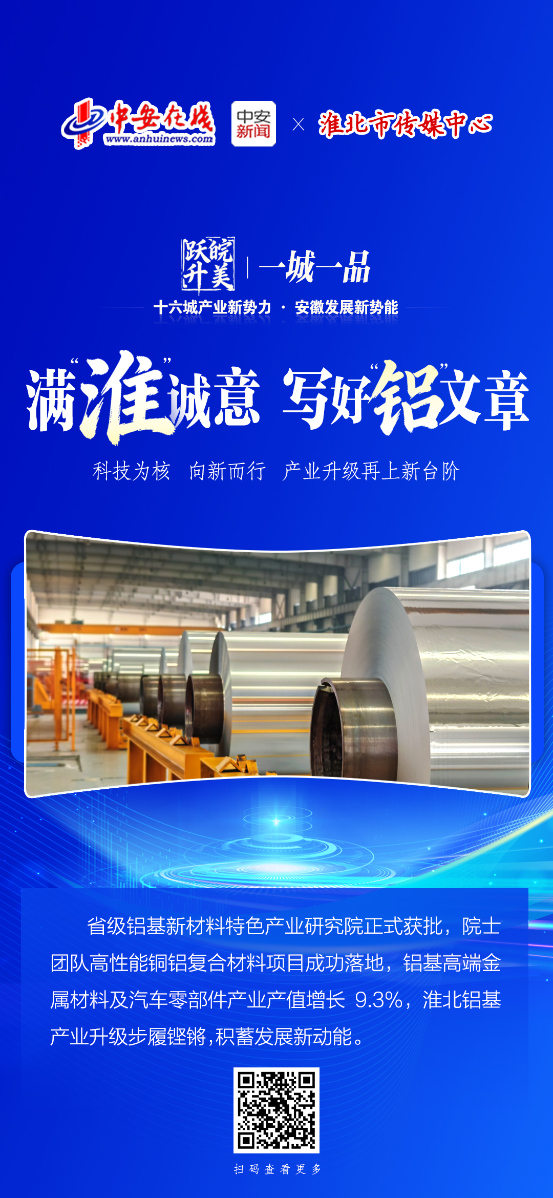 省级铝基新材料特色产业研究院正式获批,院士团队高性能铜铝复合材料项目成功落地,铝基高端金属材料及汽车零部件产业产值增长9.3%……今年淮北市政府工作报告里提及的一项项亮眼成果,串联起淮北铝基产业迭代升级的坚实足迹,更勾勒出这座资源型城市向新而上、逐梦千亿的发展蓝图。