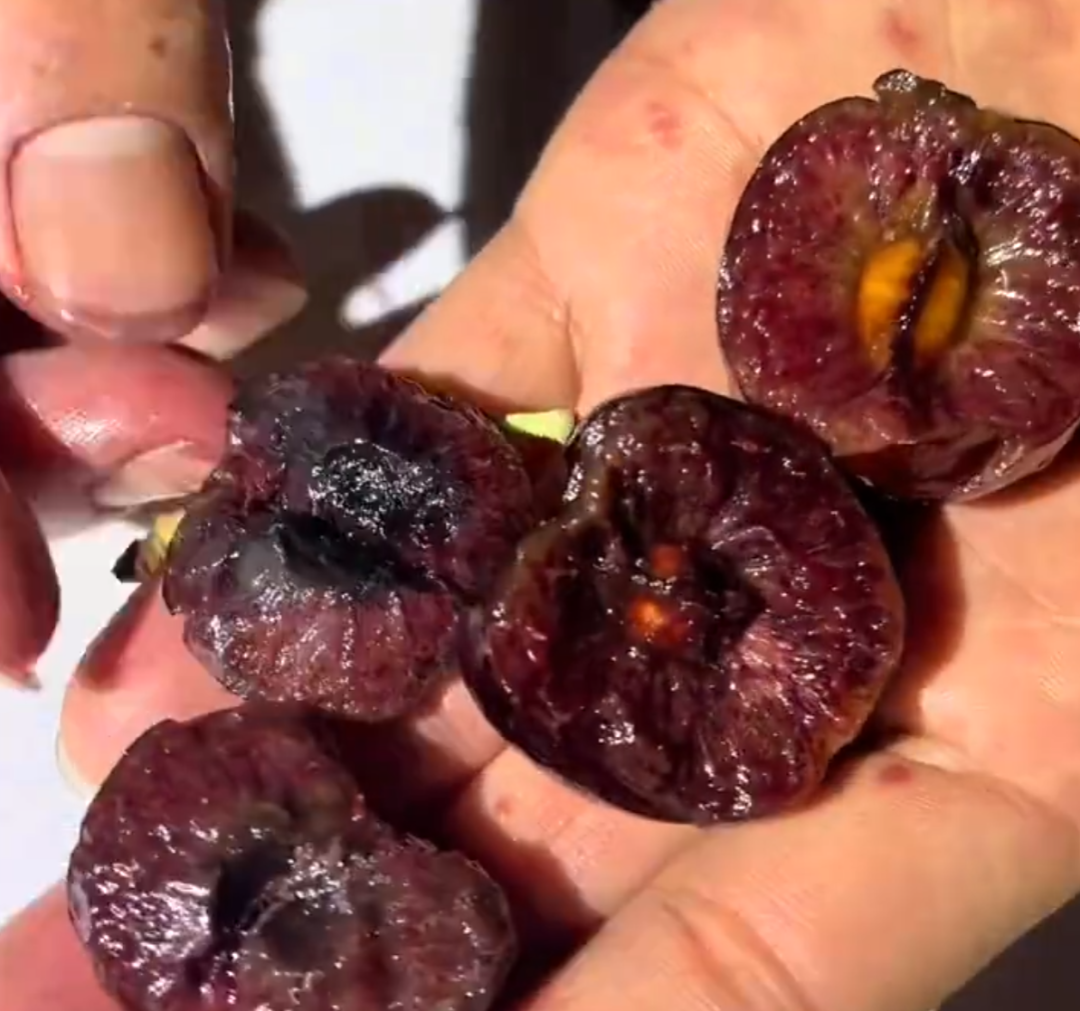 看起来“完好”的部分,其实也已被污染,显微镜下清晰可见菌丝的踪迹。由于水果水分充足,霉菌和毒素会随汁液进行扩散。